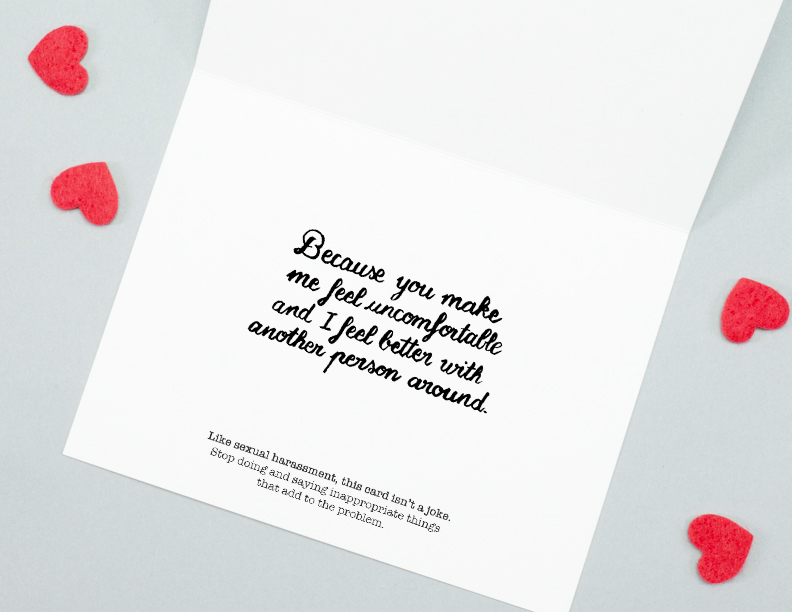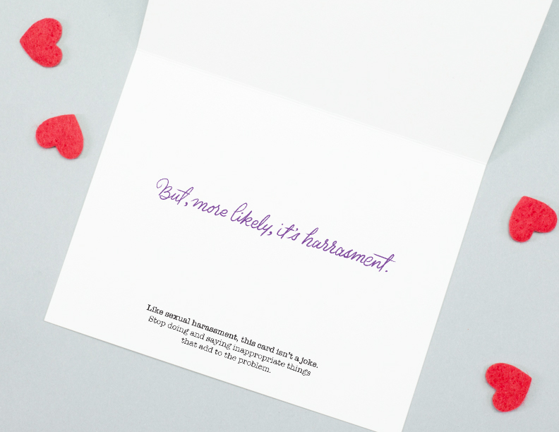 ...mail it anonymously and make your harassentine think it’s from a secret admirer.